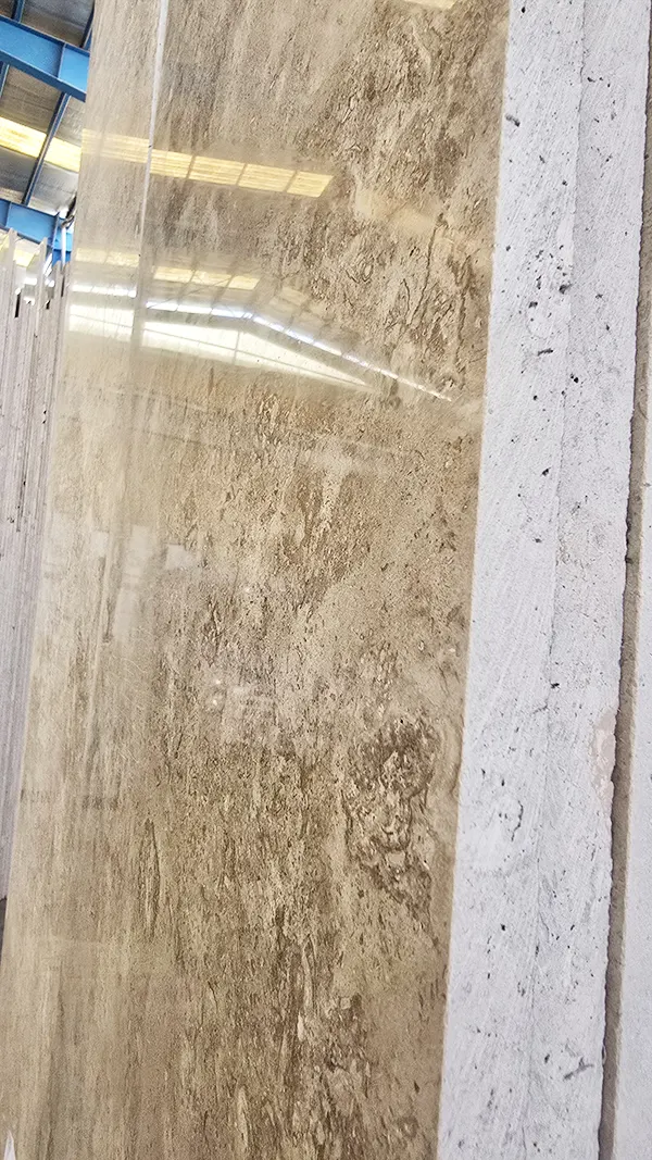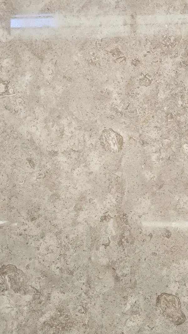سنگ تراورتن کرم نسکافه ای حاجی آباد دارای رنگ زمینه کرم یا نسکافه ای و هاله های منظم و زیبا می باشد.